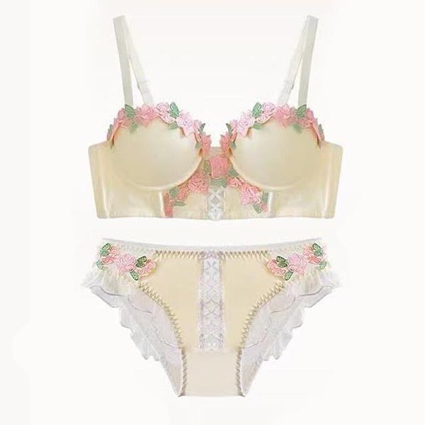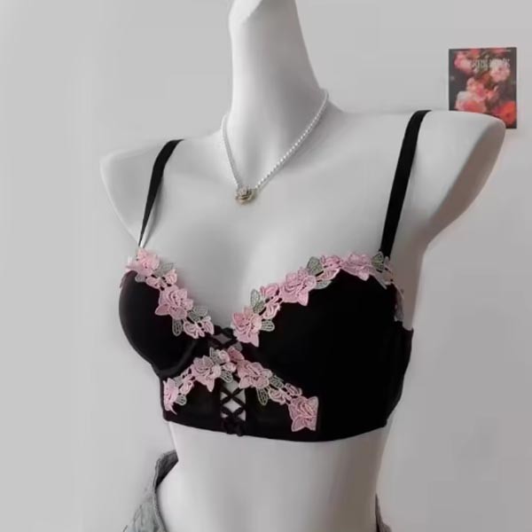 New French Retro Sexy Lace Sweet Floral Embroidery Bra Push-up Bra
